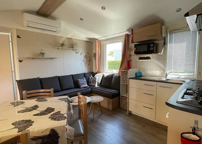 Un réfrigérateur, un four et de la vaisselle sont disponibles dans une cuisine équipée de ce logement. Vous aurez la possibilité de dîner au palm's, situé dans une zone de 350 mètres. L'aéroport de La Rochelle-Île de Ré est à 85 km de cette villa des Mathes. Cette villa Mobilhome Eleganzia - Cc921 Les Charmettes 4 stars dispose d'une terrasse pour se détendre après une journée bien remplie, ainsi que d'une piscine.